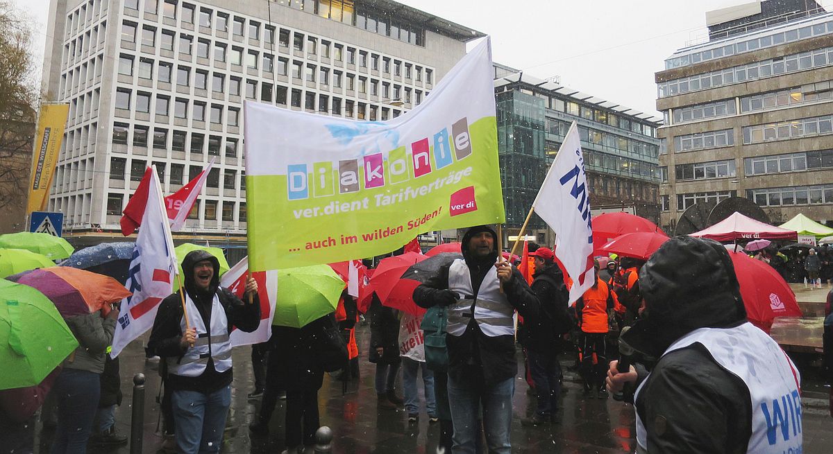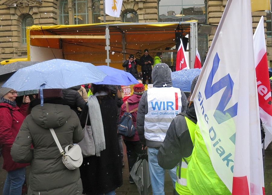 Hunderte Beschäftigte aus mehreren diakonischen Eirichtungen haben am Streik für bessere Löhne teilgenommen.