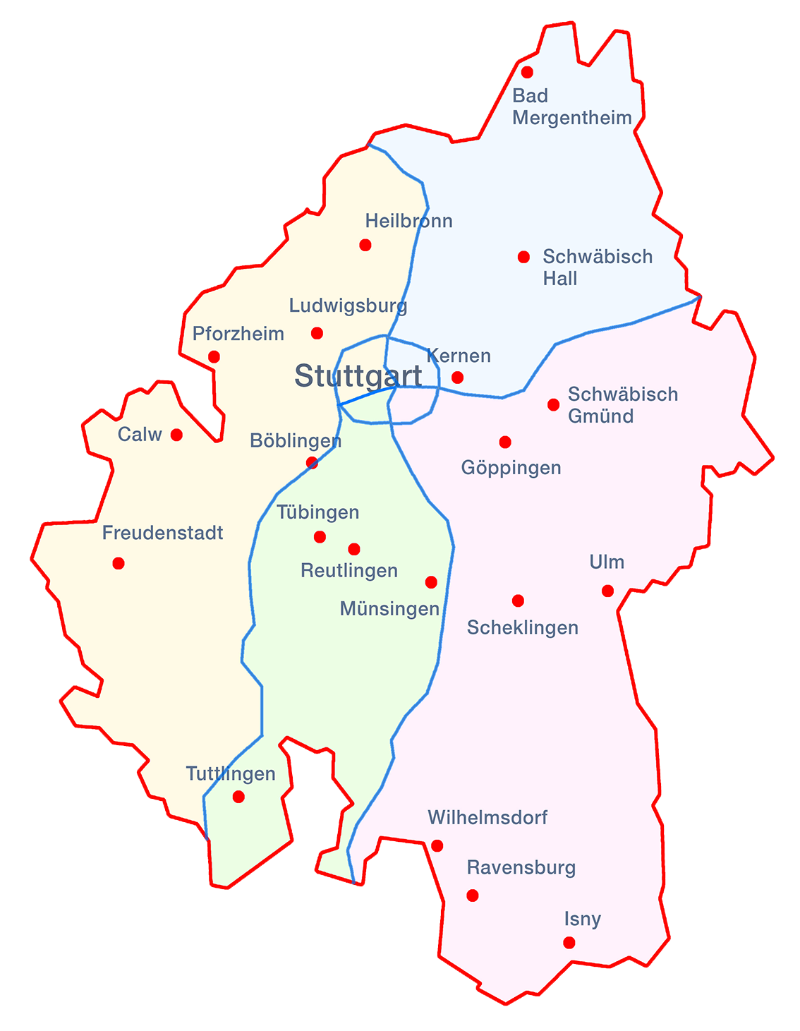 Die AGMAV Regionalversammlungen sind im Bereich der württembergischen Landeskirche in die vier Regionen Nord, Ost, Süd und West aufgeteilt.