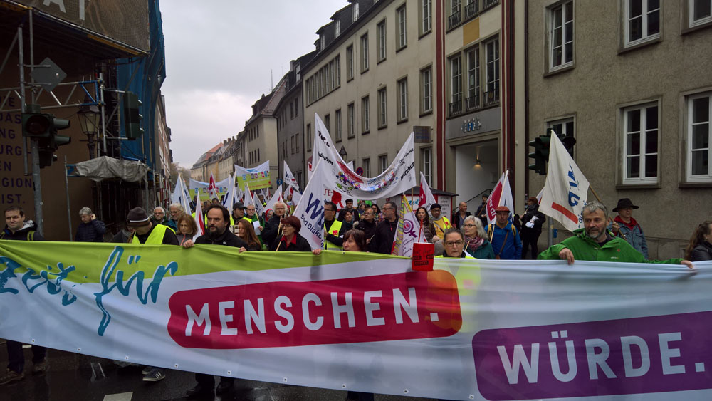 Nicht mit uns! Das lassen wir uns nicht gefallen! Gleiche Rechte wie im Betriebsverfassungsgesetz! "Die Kirchen haben schon vor 70 Jahren versprochen, ein mit den weltlichen Regeln vergleichbares Recht zu schaffen - davon sind sie immer noch weit entfernt." betonte Uli Maier gegenüber der Presse.